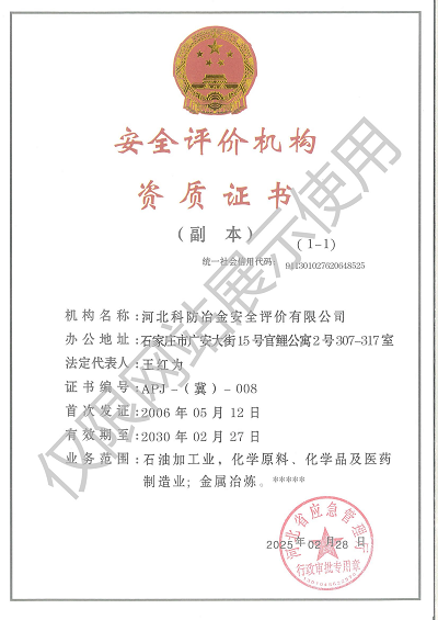 發(fā)證單位:河北省應(yīng)急管理廳