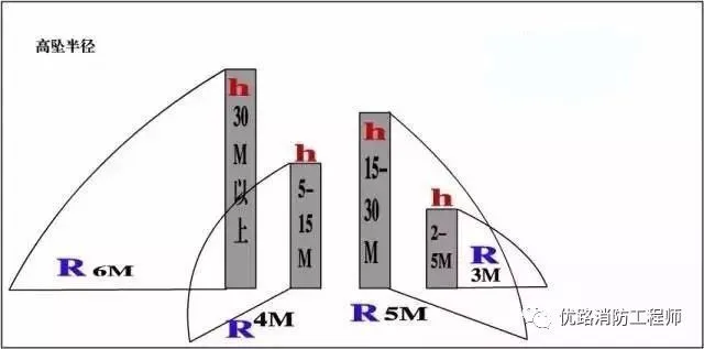 可能墜落范圍半徑的規(guī)定 R根據(jù)hi規(guī)定如下:a)當(dāng)2m≤hb≤5m時(shí),R為3m;b)當(dāng)5m<hb≤15m時(shí),R為4m;c)當(dāng)15m<hb≤30m時(shí),R為5m;d)hb>30m時(shí),R為6m.《高處作業(yè)分級(jí)》GB/T3608-2008